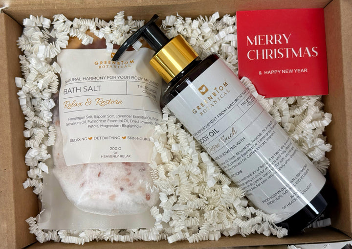 Transformă orice seară într-o experiență de spa. Boxul conține o sare de baie cu uleiuri esențiale, plante și fructe uscate, ideală pentru relaxare profundă, și un ulei de corp hrănitor, care lasă pielea catifelată și luminoasă. Un cadou natural, rafinat și perfect pentru răsfățul de zi cu zi. 🌿